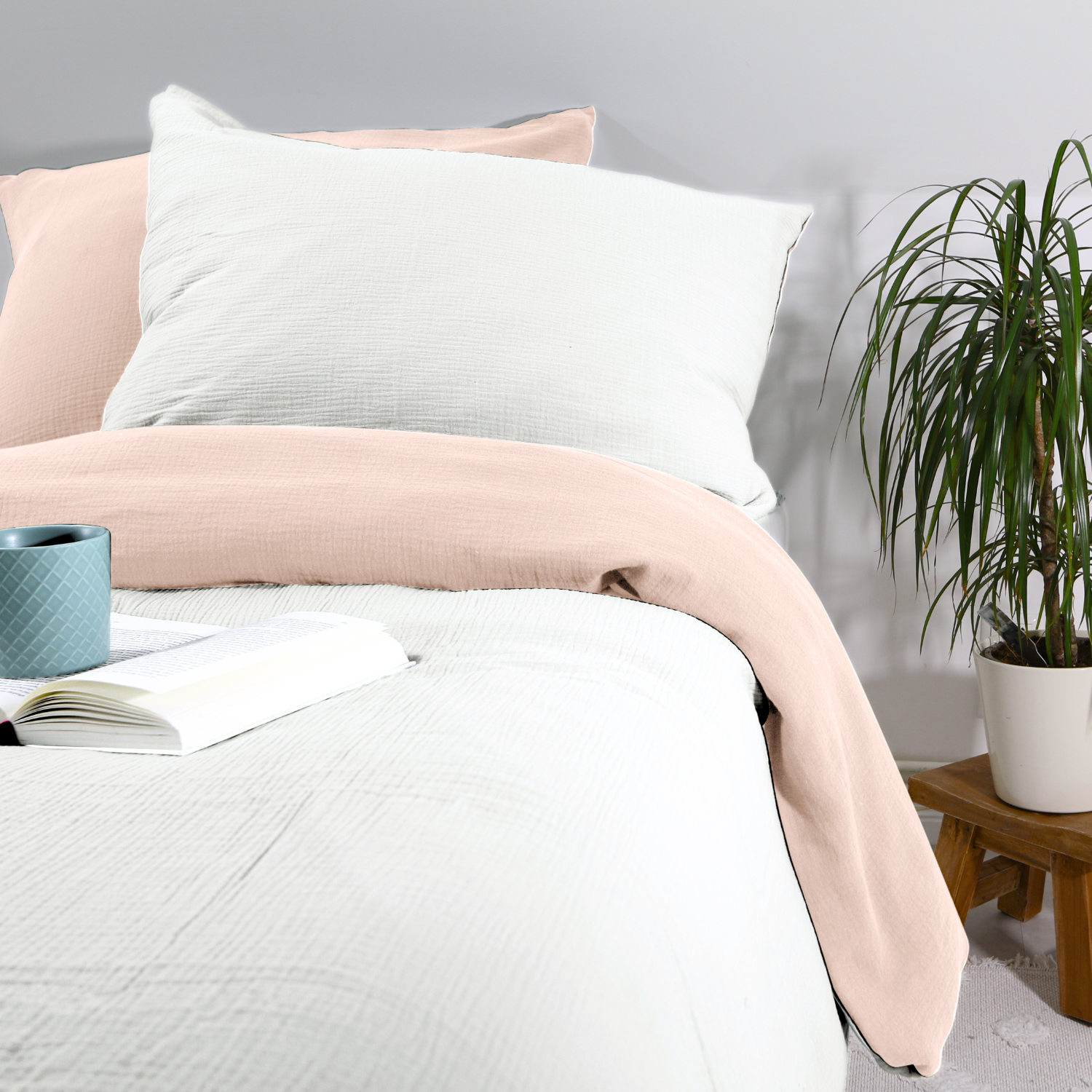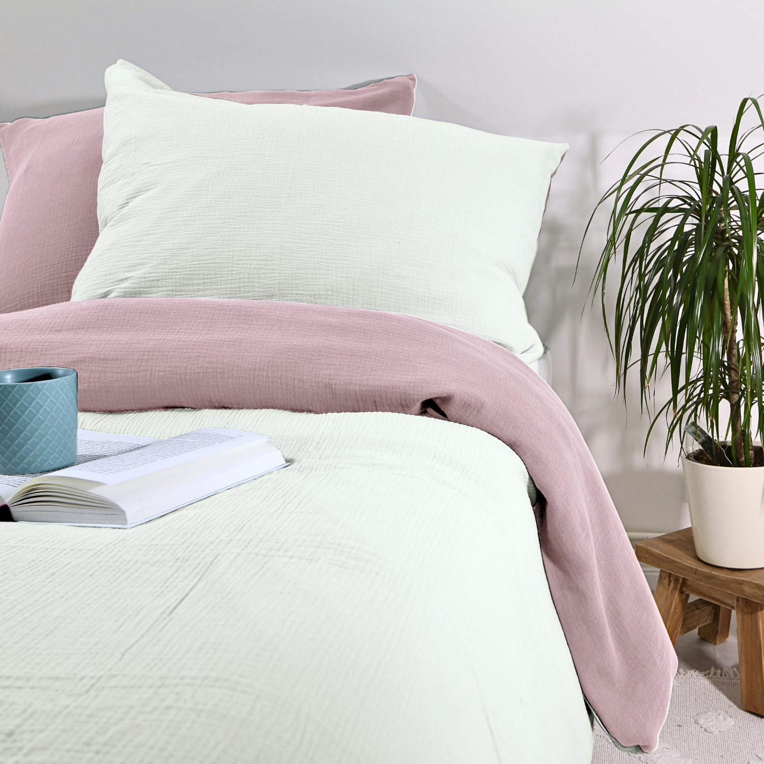 Genieße weiche Musselin Bettwäsche aus 100 % Bio-Baumwolle im zweifarbigen Design..
