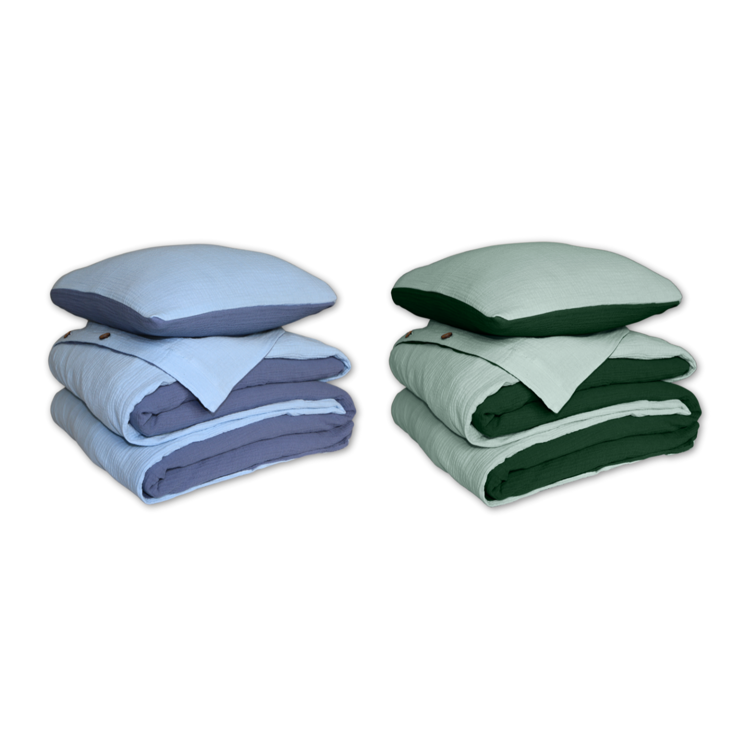 2er-Set: Entdecke unsere Musselin Bettwäsche Bundles im zweifarbigen Design, um deinem Schlaf...